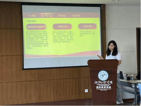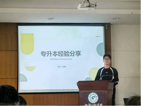 在学习经验分享会上,国家奖学金获得者史洺昊从“形式分析”“考题剖析”“学习建议”“心态调节”四个方面展开分享。他以数据为支撑,展示专升本招生人数与分数线,帮助同学把握趋势;在考题分析中解读命题规律,提炼得分点与难点。学习方法上,他提出“基础巩固—难题突破—真题演练”的递进策略,并结合自身经历分享心态调节方法,缓解备考焦虑,为同学们注入了强大的精神动力。