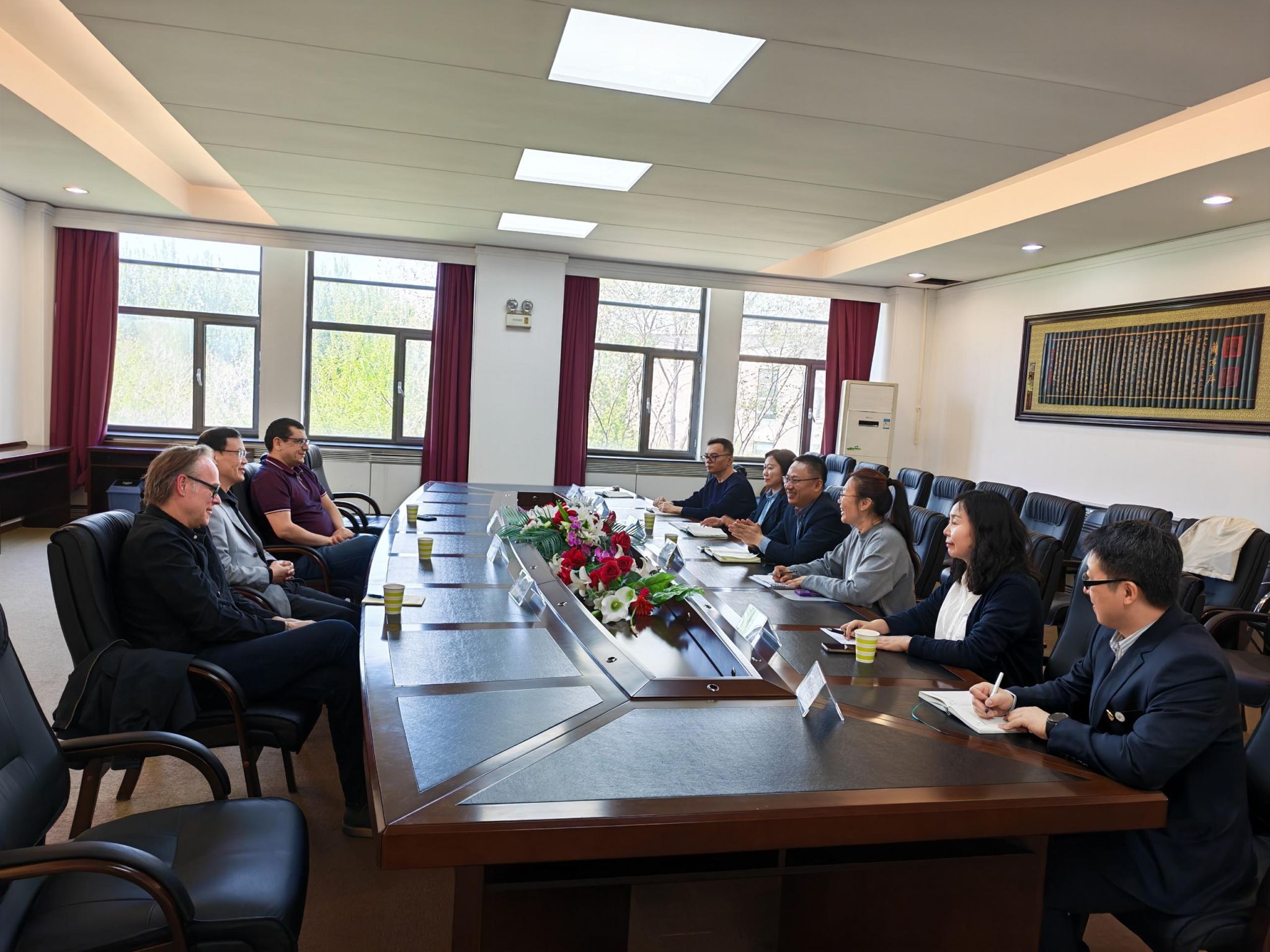 会上,王雷对加方教师的到来表示欢迎,对各位老师为两校合作办学的教学工作的付出表示感谢。加方教师介绍了课程开发相关情况,双方教师进一步交流了授课工作安排。
